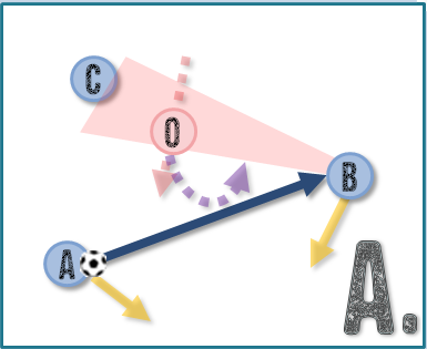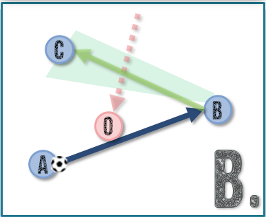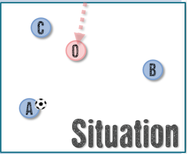 (A) has the ball, im my example this is Mikel. He has one passing choice to progress forward, this is (B) because (O) could easily intercept a pass toward (C).