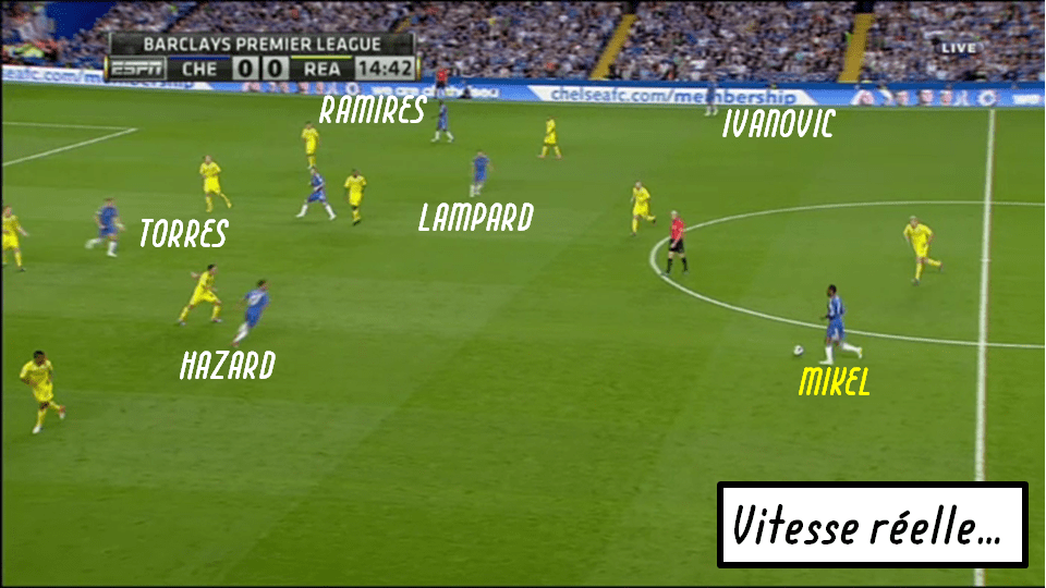 La conséquence la plus notable étant cette exposition de l’arrière garde Londonienne présentant des intervalles importants dans l’axe (puisque Mikel n’évolue plus systématiquement dans cette zone cruciale) et dans les couloirs (en raison des errements tactiques d’Ivanovic, mais surtout de Cahill à la couverture) ; la lenteur de Branislav Ivanovic haut et souvent pris par des ballons en profondeur dans son dos n’aidant pas.