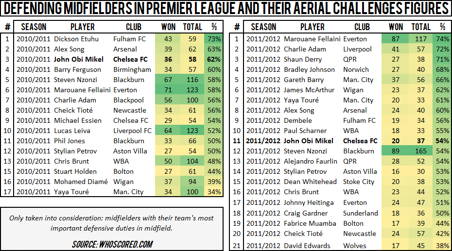 (3): Here’s the aerial challenge table for the defending midfielders the last two seasons: