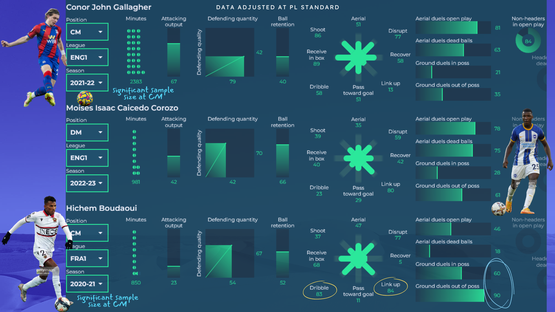 Moisés Caicedo’s latest as the benchmark of that 5-player focus.