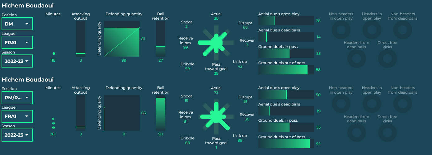 In 2022/23 I think Boudaoui is only yet to play goalkeeper, doesn’t have any significant sample size anywhere so far.