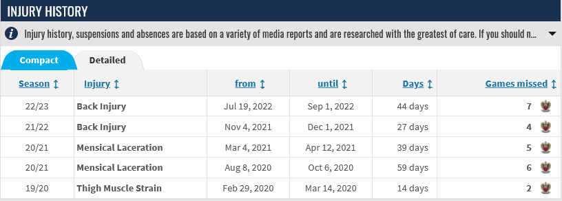 However, he doesn’t have recurring muscular issues, which is a good sign for a player who runs a lot, and whose game partly relies on short bursts of pace.