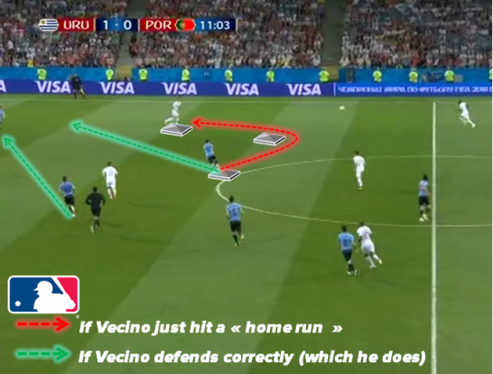 He’s also able to open up to receive it in return on his left back foot and play towards the left side. (ie: right back passes the ball back inside, HB receives with his left foot and picks a mid range progressive pass with his right)