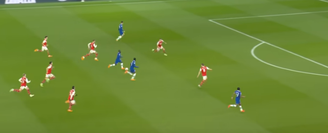 DOUBLE TEAM: it’s simple: deepest runner picks up the most advanced runner. Kenedy must pick Havertz (that’s the double team) whilst Chilwell takes care of the runner that is Emerson