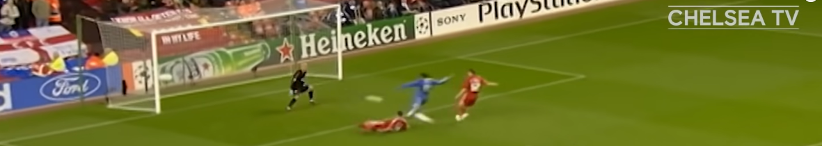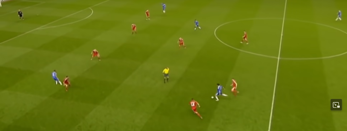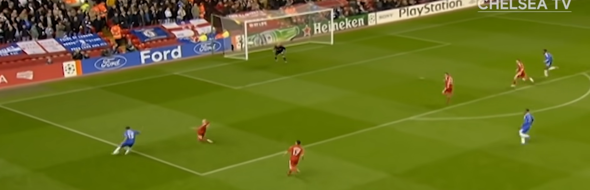 A trip down memory lane: Ballack plays through Malouda, Drogba is on the far right of the attack. Goal #88 at Liverpool