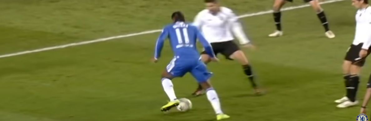 Example of Drogbaâs goal #148 vs Valencia. Thatâs quick footwork, every step is nailed on, athletic and dynamic. Not just âone foot after the otherâ