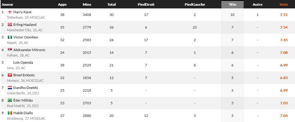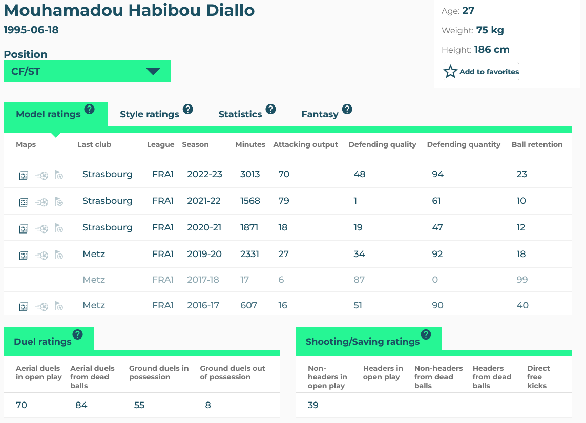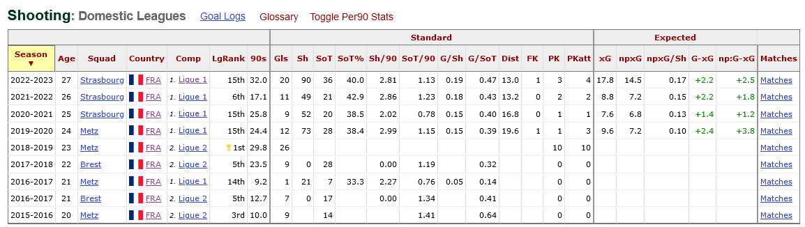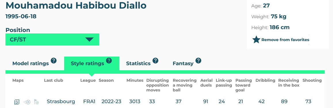 Diallo’s footed finishing is not very high (39), which is a credit to Strasbourg for maximising opportunities to score first time finishes.