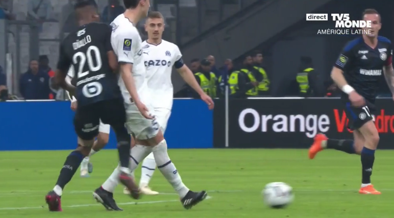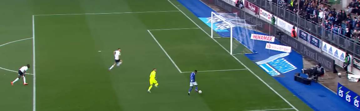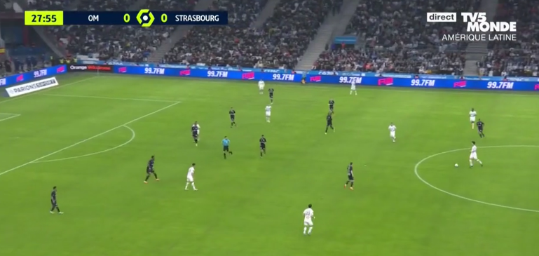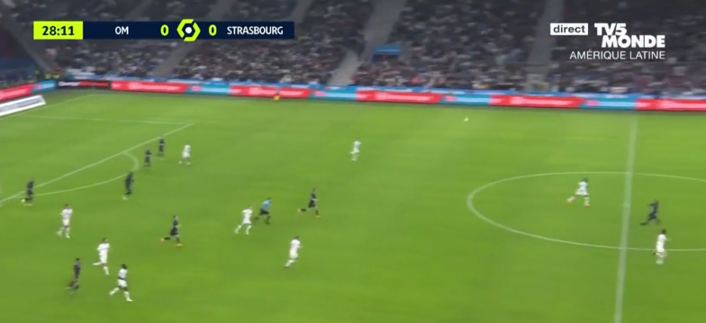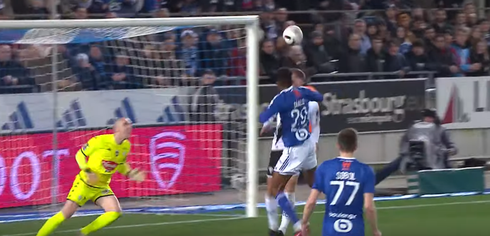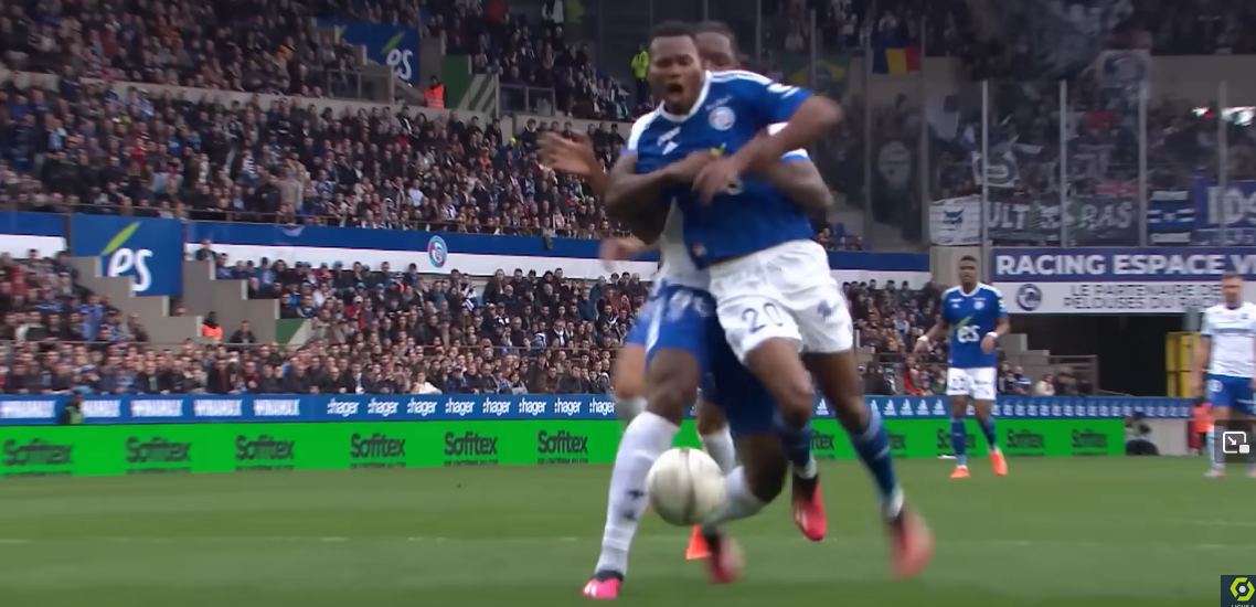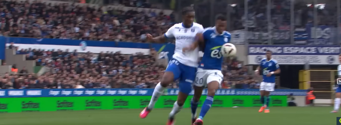 Here he is on top of Strasbourg’s 541, disrupting Balerdi with a little nudge.