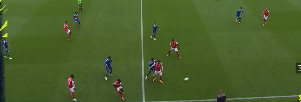 Diallo plays cat and mouse with the CBs by staying in between, puts himself just back onside