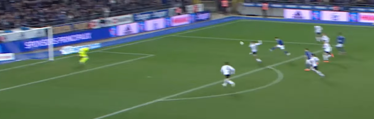 That’s a proper Uber Eats long ball over the top, Diallo is keen to make these long runs. He’s not particularly quick but probably above average, especially for his size. Has the gamemanship to be a nuisance to make defenders run towards their goal all game long, from different starting locations (out to in, in to in)