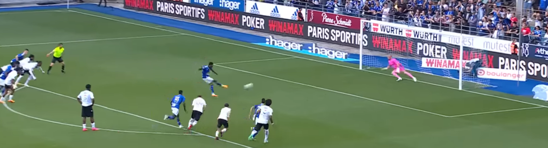 Moments later, Strasbourg’s pressing trap snaps