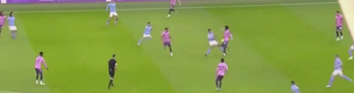 Play could’ve gone on, but the referee called City’s antifootball tactical fouling on this one.