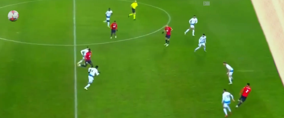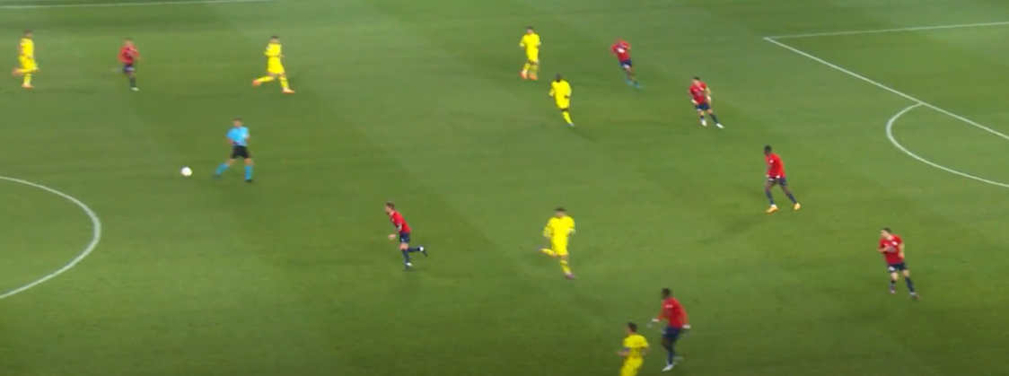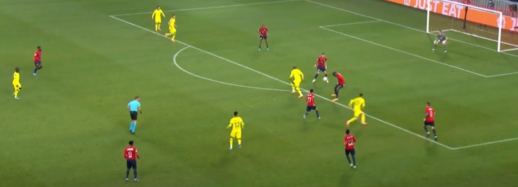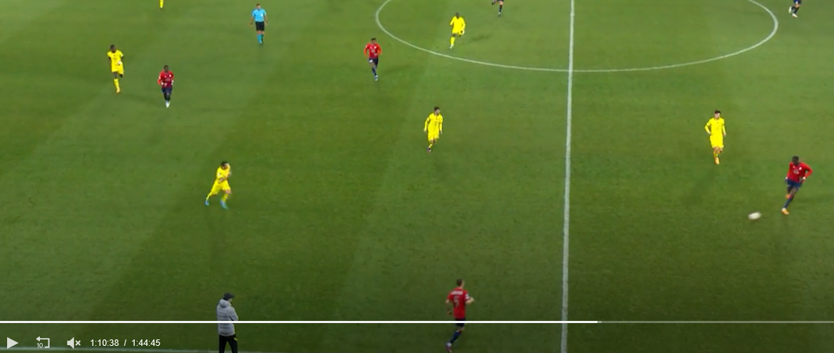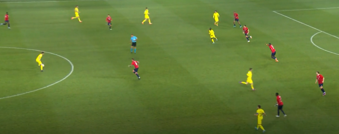 The peculiar Jonathan David scores goals, but also likes to drop off the front to connect. Onana was intelligently pinning the CBs and working “round the clock”