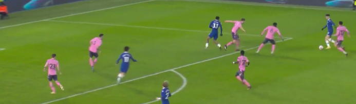 Squaring a blind pass to Angel Gomes who’s now space to attack, with Ziyech and Lukaku out of position
