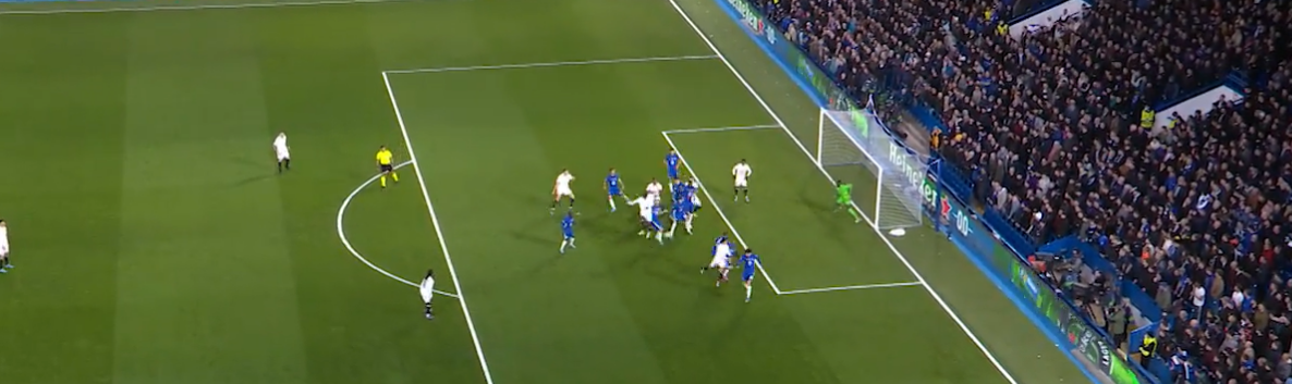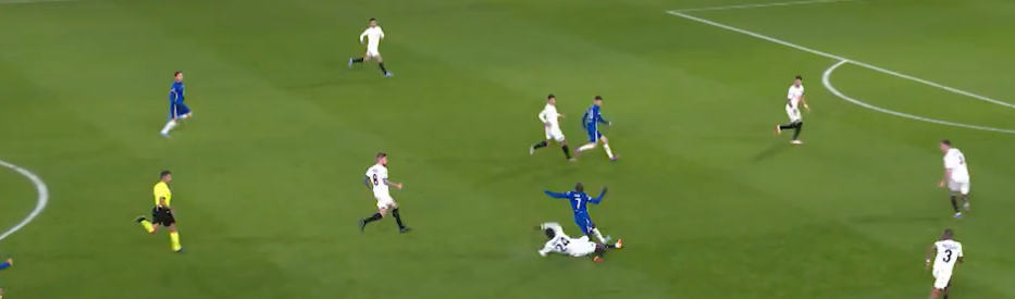 And dispossessing none other than N’Golo Kanté with one of his ever impressive left leg tackles – usually players would tackle with the right leg (but would make a foul because the leg catches the player, or is deemed too high)