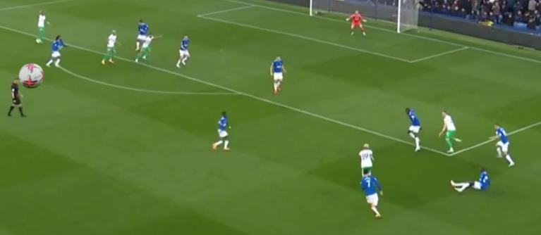 This sequence speaks for itself, how and why Everton found themselves wide open is a different question. Point is, Onana raised to the challenge by showing tremendous pace to salvage his team; with the cheek to not turn the ball over on recovery.