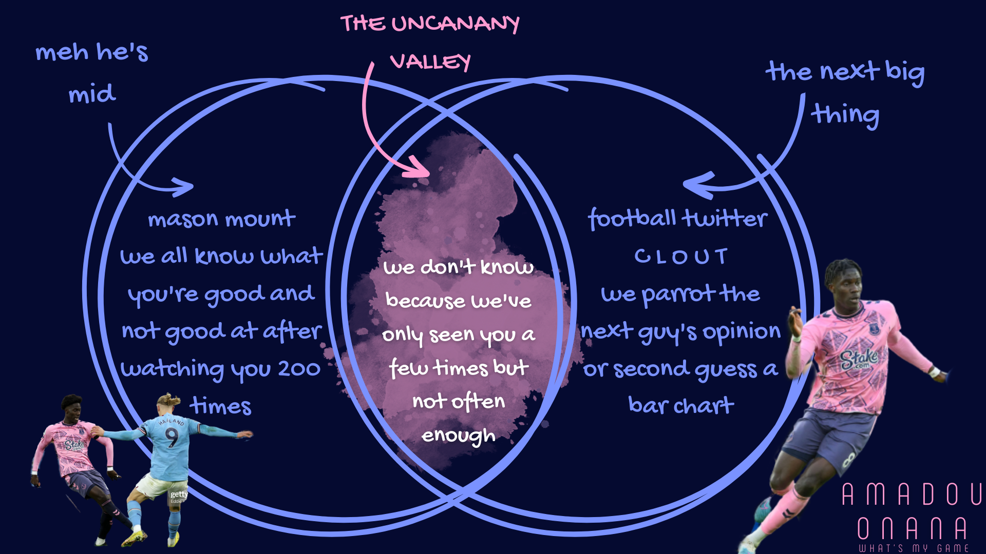 Amadou Onana is currently in the middle, more precisely in the uncananany valley that has everyone knowing his name (okay no more) but without holding a firm opinion on his actual level, after having seen his name pop up here and there in recent years.