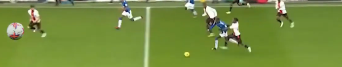 Lavia just can’t catch up, via footwork, turn of pace or power on this play.