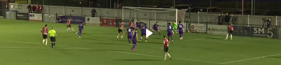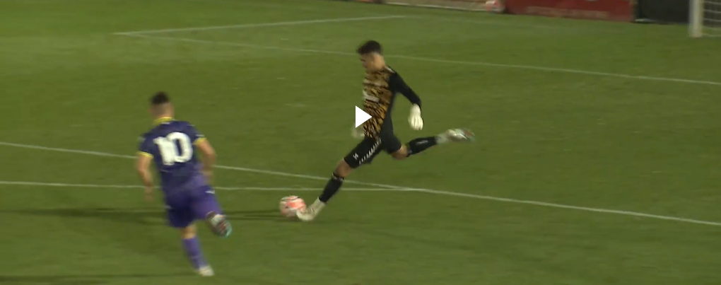 On a positive side, he’s got a big frame with long arms, and blocked with his leg one cutback cross met by Wareham that looked like a tap-in until he parried it away with his foot (which is an aspect somehow considered not ideal – usually because goalkeepers who do are wiry and stiff – which doesn’t make parrying shots with the feet bad).