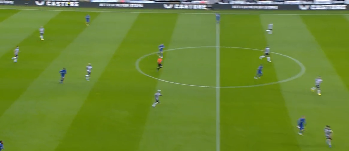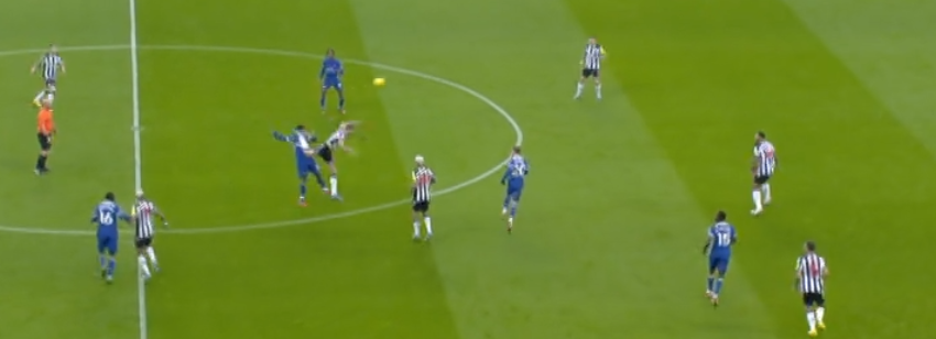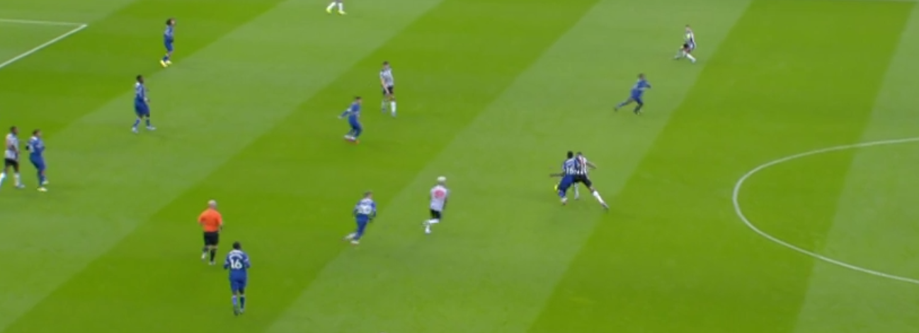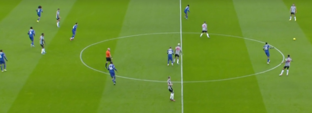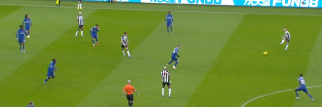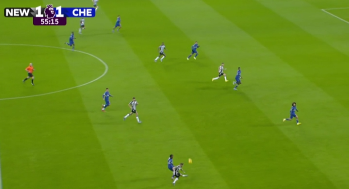 What Chelsea found difficult was that Newcastle decided to defend with a flat narrow line of 5 to shut down intervals, force needle passes.