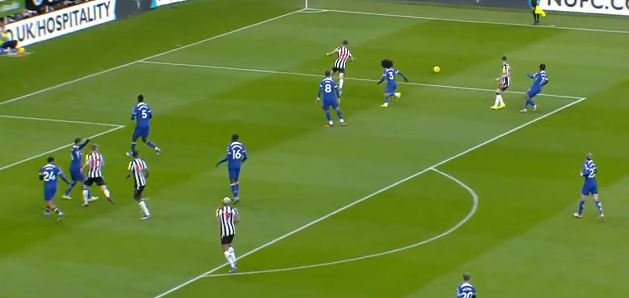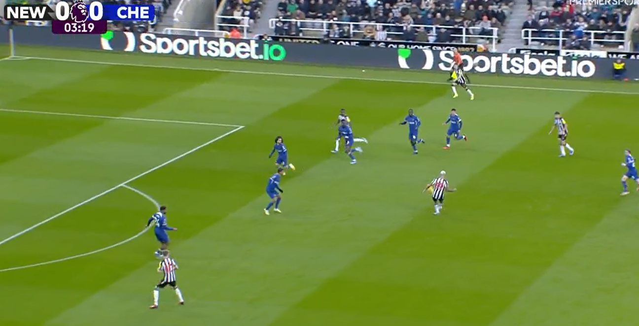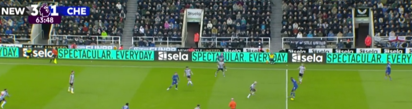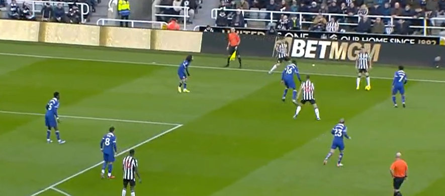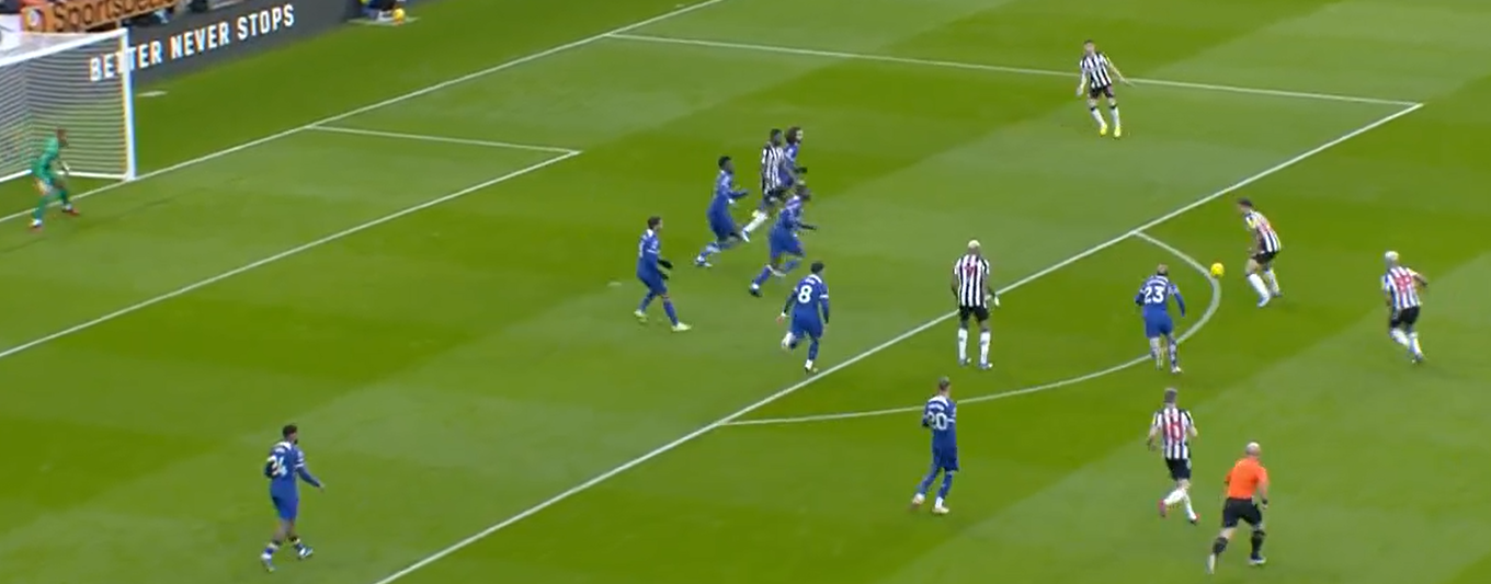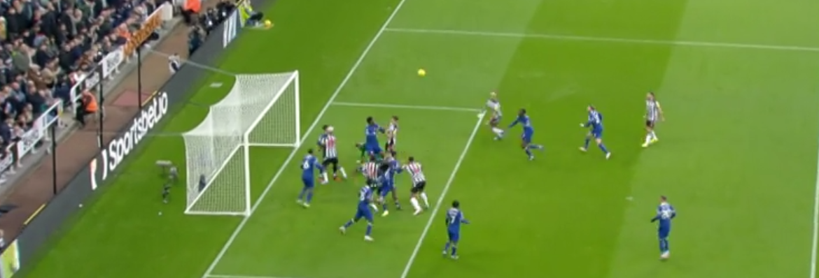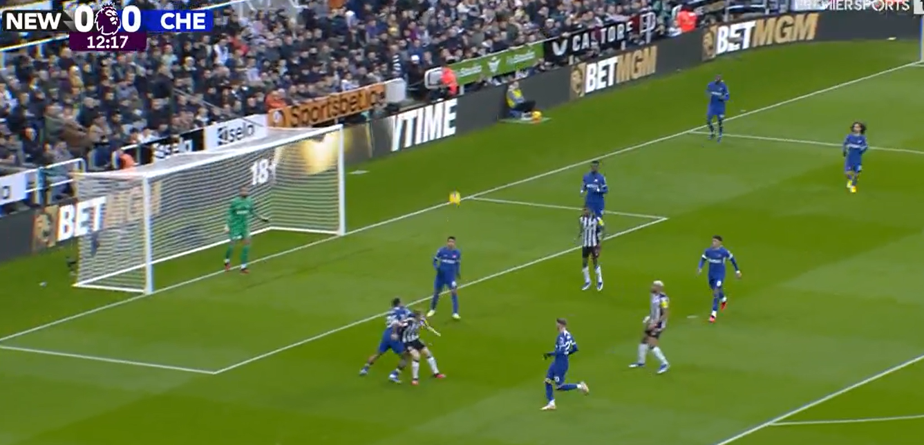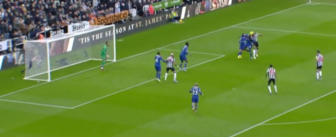 At this point, that smells trouble as Enzo / Cucurella are caught with 3 of Newcastle’s best headers ready to crash the far post