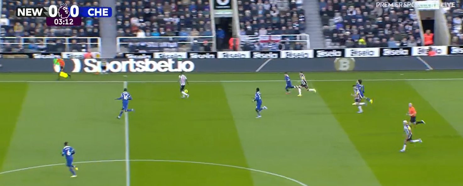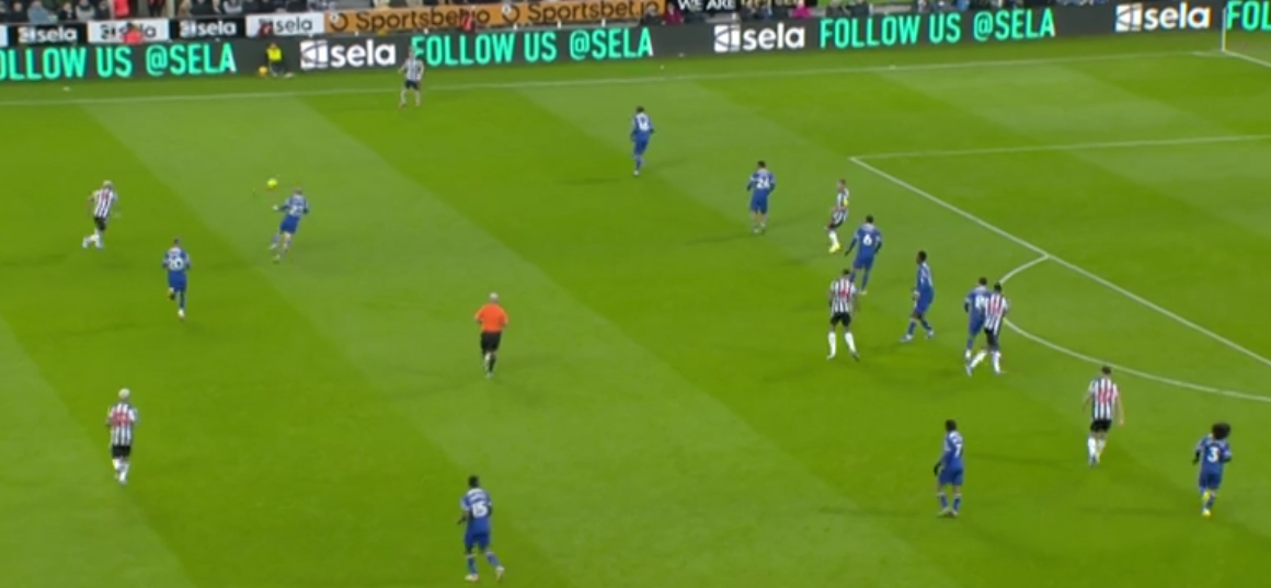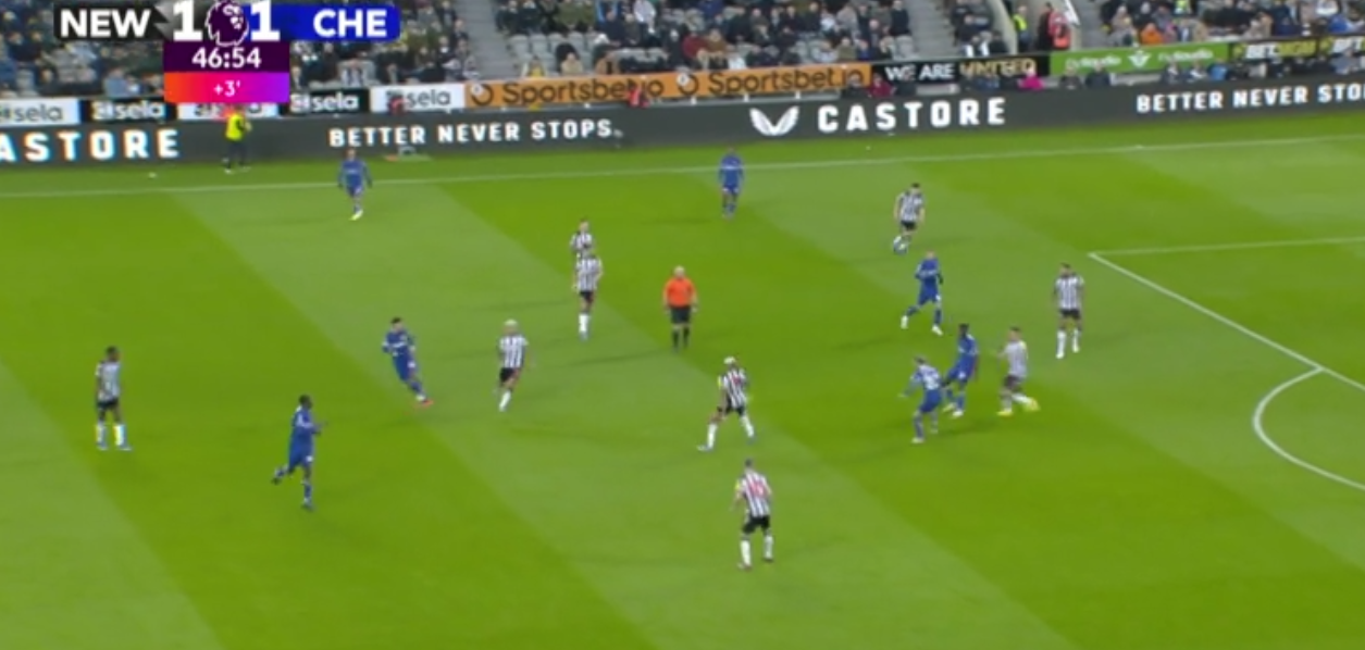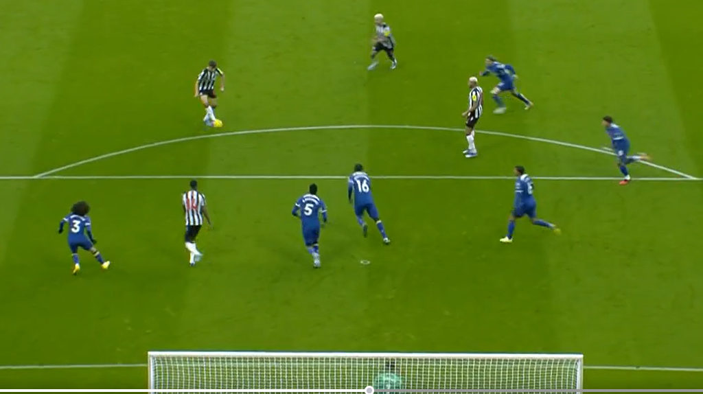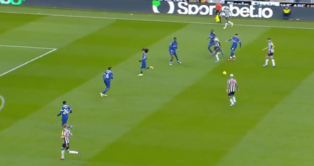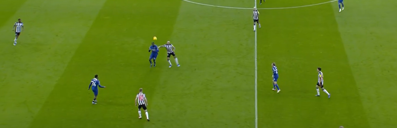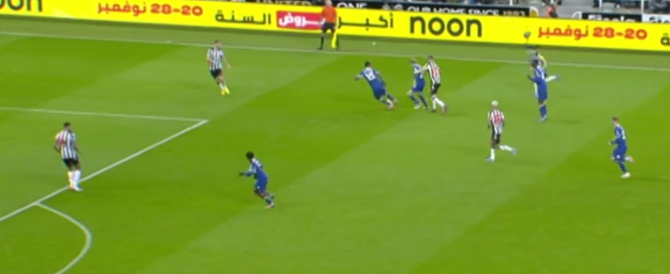 At this point, that smells trouble as Enzo / Cucurella are caught with 3 of Newcastle’s best headers ready to crash the far post