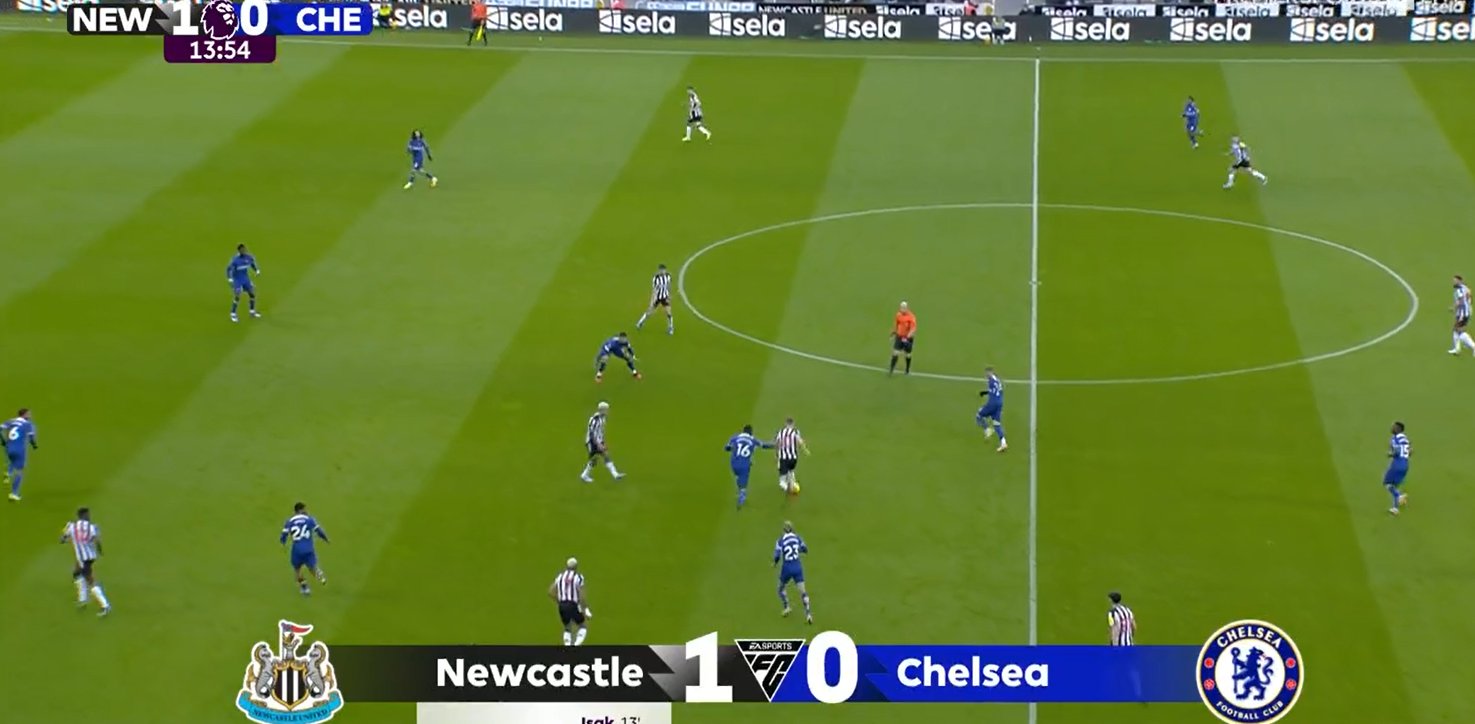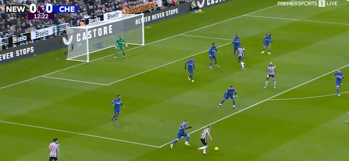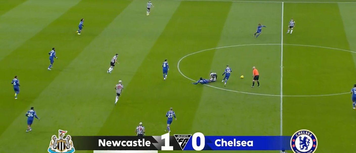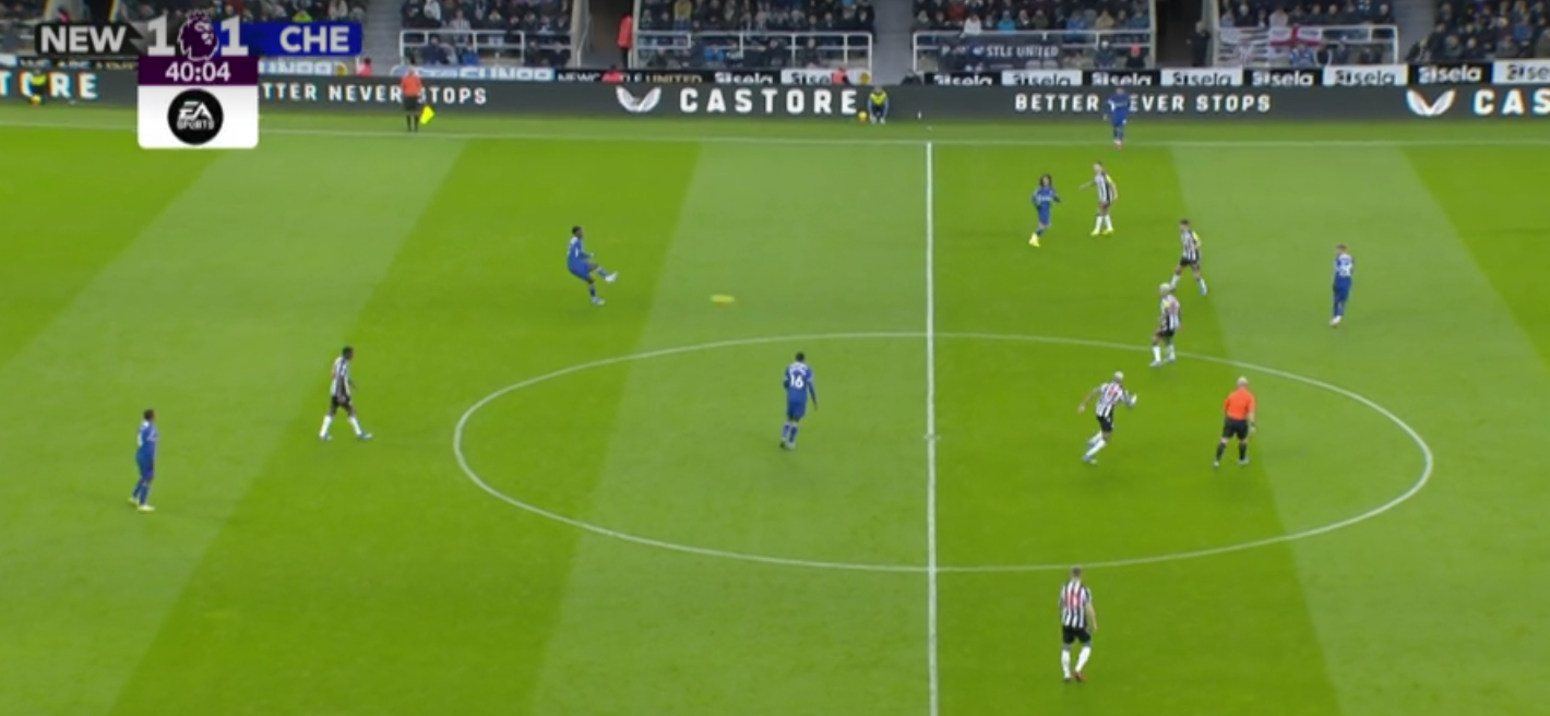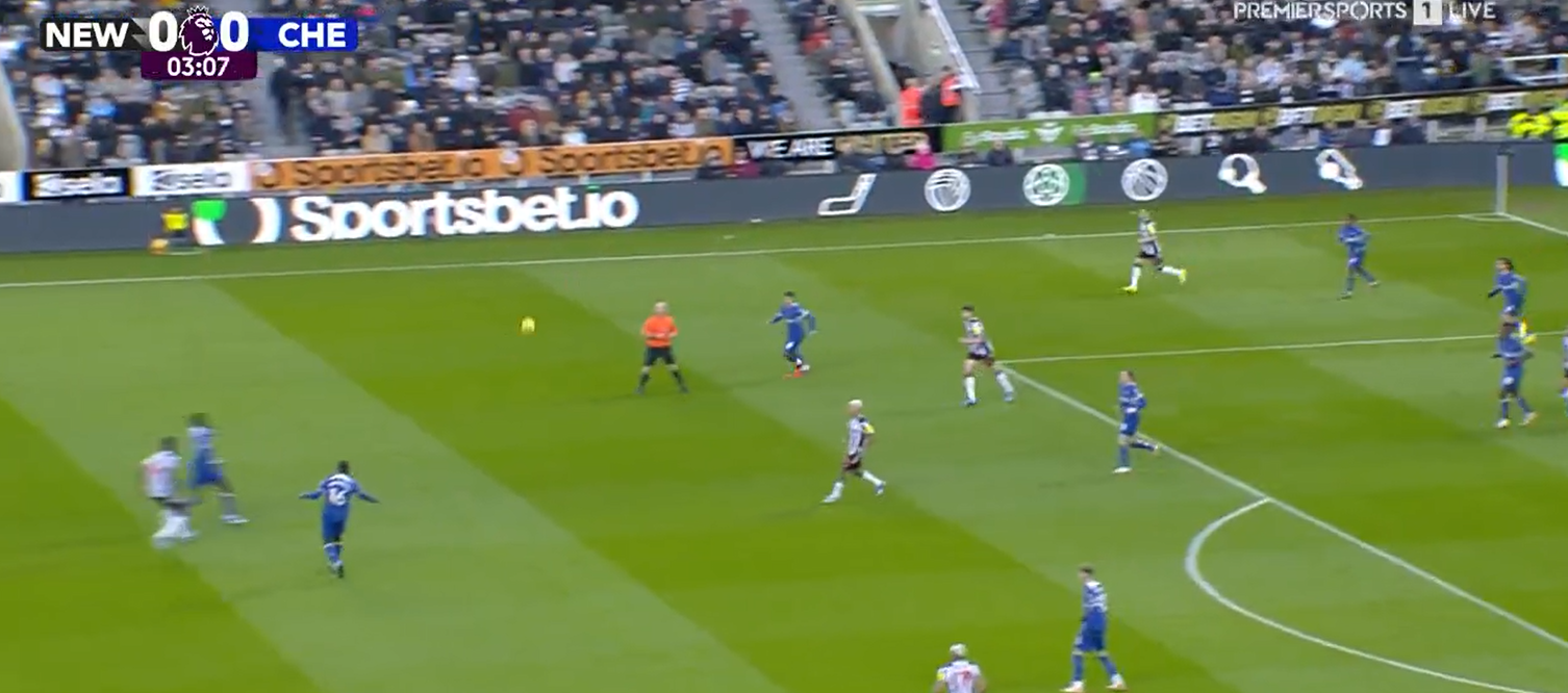 At this point, that smells trouble as Enzo / Cucurella are caught with 3 of Newcastle’s best headers ready to crash the far post