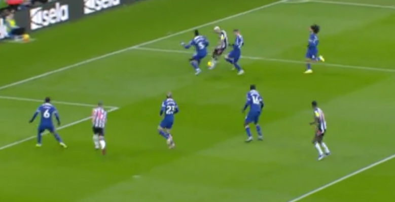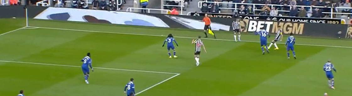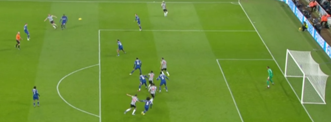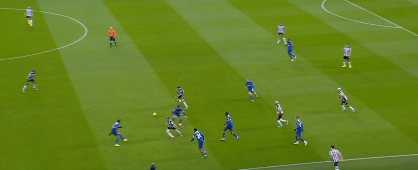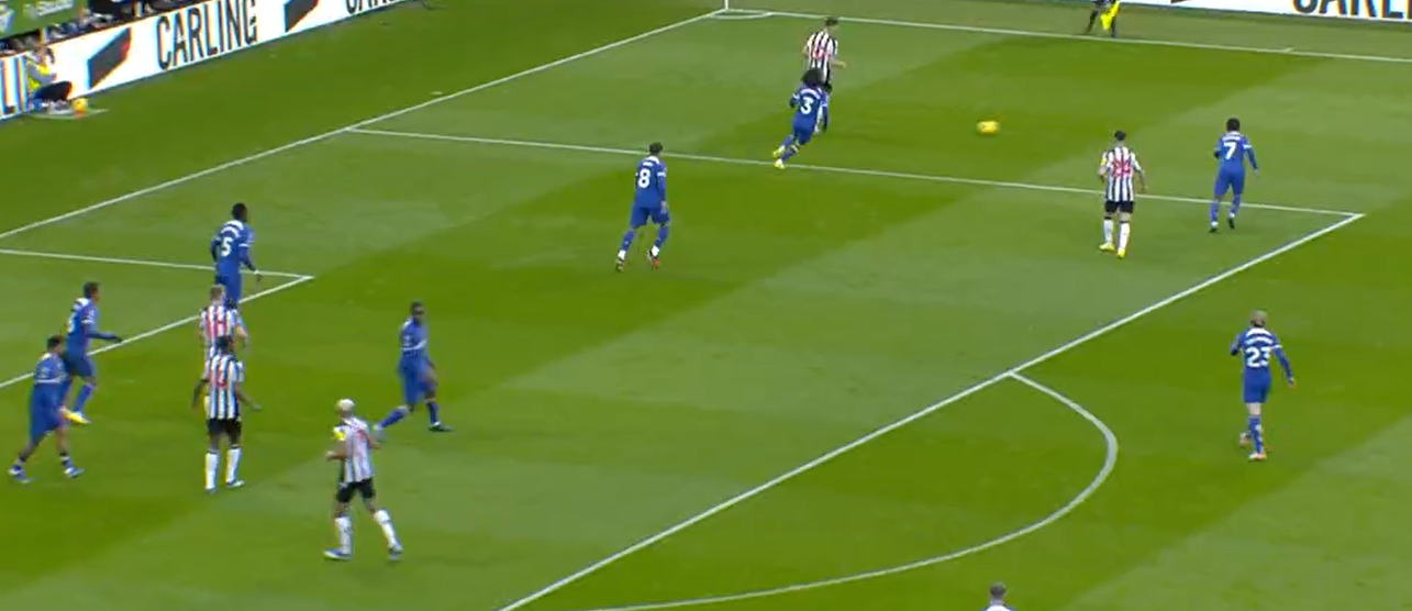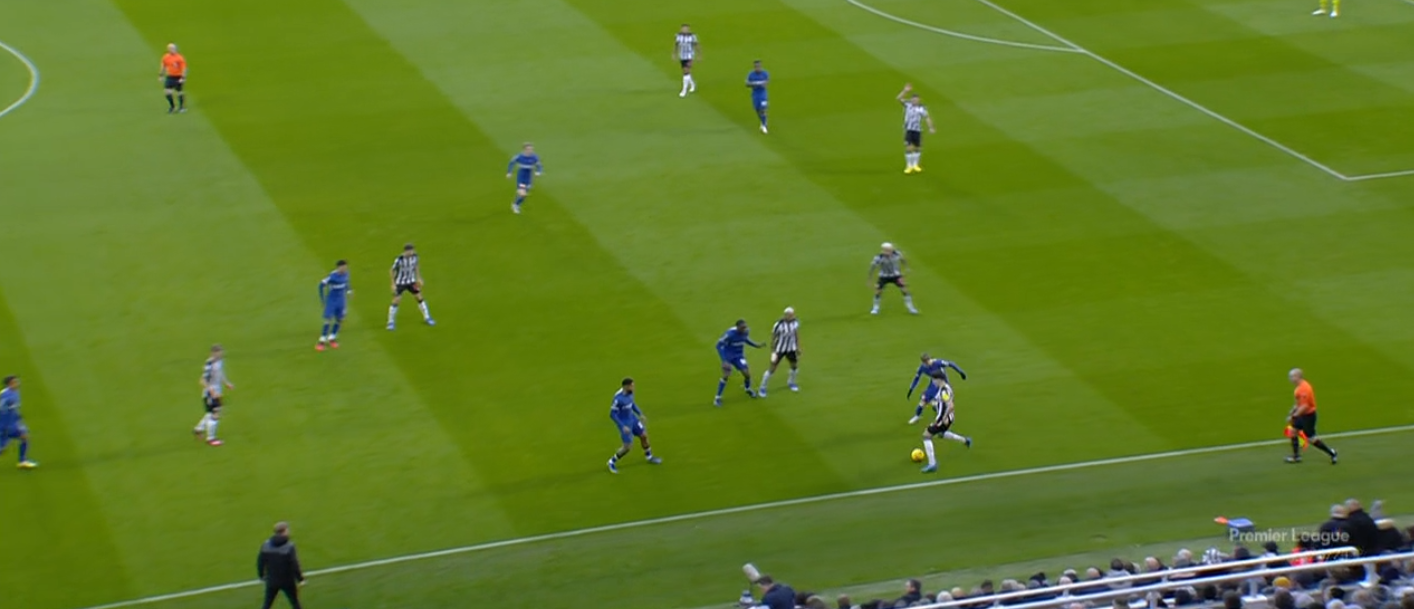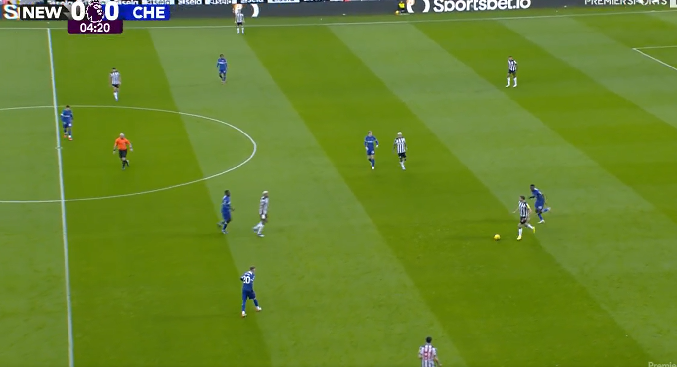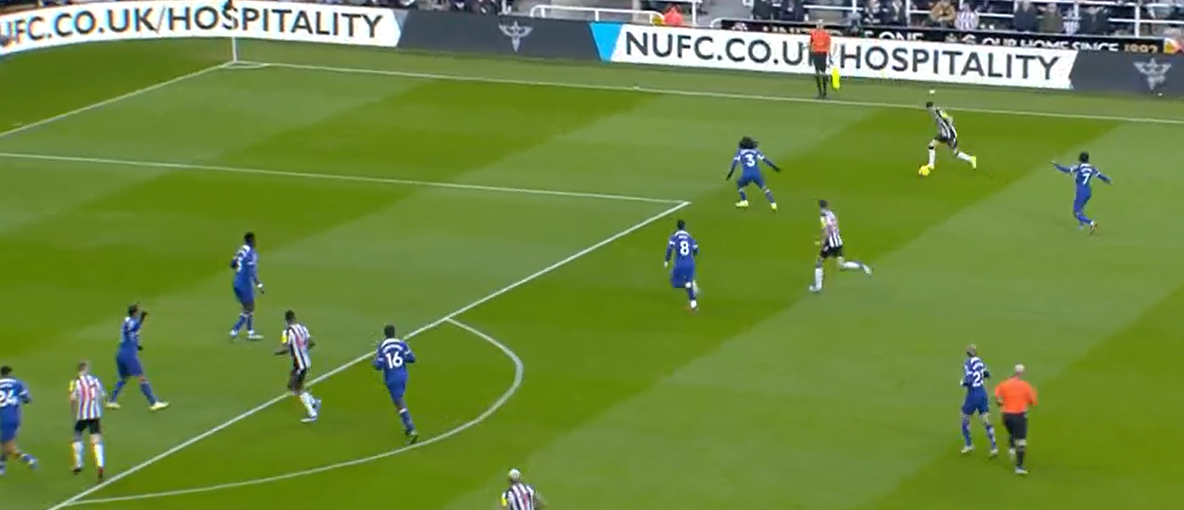 At this point, that smells trouble as Enzo / Cucurella are caught with 3 of Newcastle’s best headers ready to crash the far post