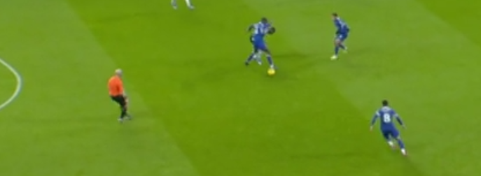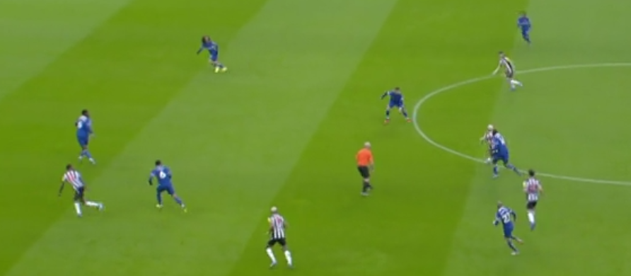 Chelsea find themselves in a 3v3, Sterling spreads wide, Palmer sort of looks on. Jackson’s left footed pass is lame, and the possession is turned over