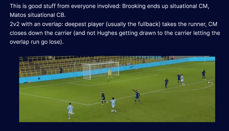 Said oddly duckling, if he had any tactical awareness, would recognize that the defensive rotation brings him as having to do the “situational CM” duty in order to able to close down Bruno.