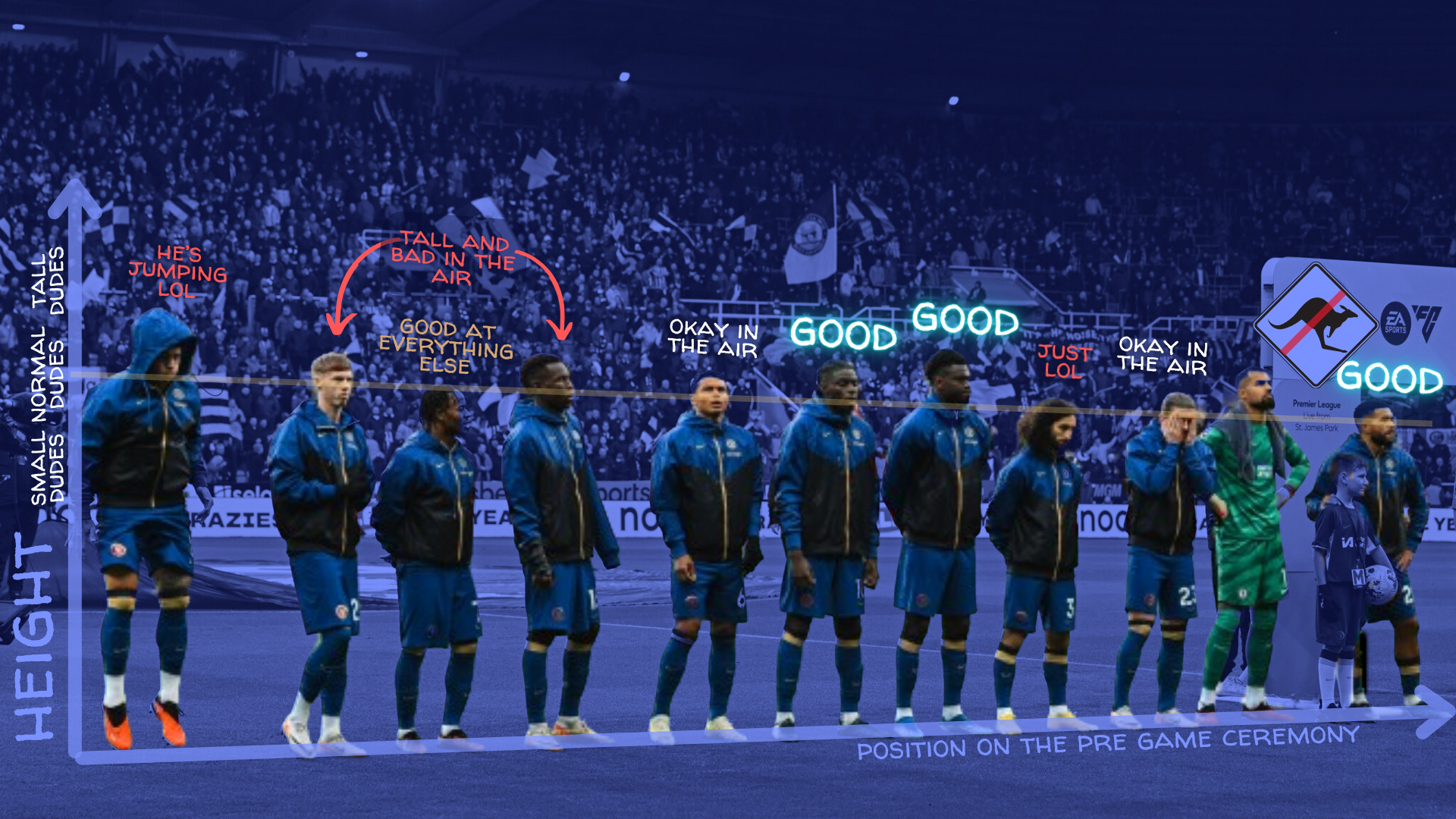 It’s still important to have tall dudes at disposal, because you’d expect to use one as base man (guy between ball and near post) whilst keeping reasonably good enough headers for markings.