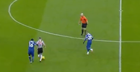 Plays a give and go, carries for 20 yards and plays the ball to an opposition player, only missing Gallagher by a country mile.