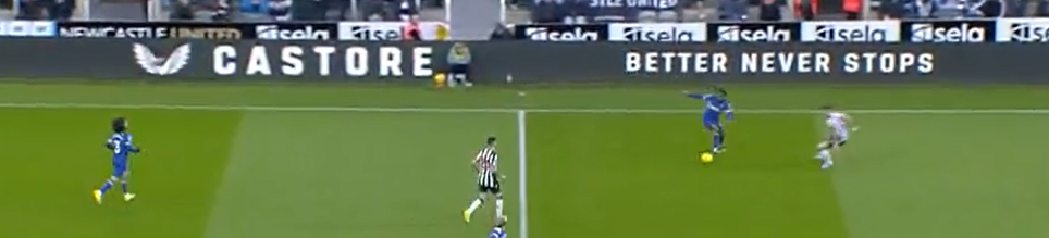 Moving it quickly, they transform Chelsea’s initial near side, in their weak side as the far side from Gordon’s cross (from the other wing)