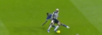Knock Joelinton off the ball, notice how the right arm complements the tackle.