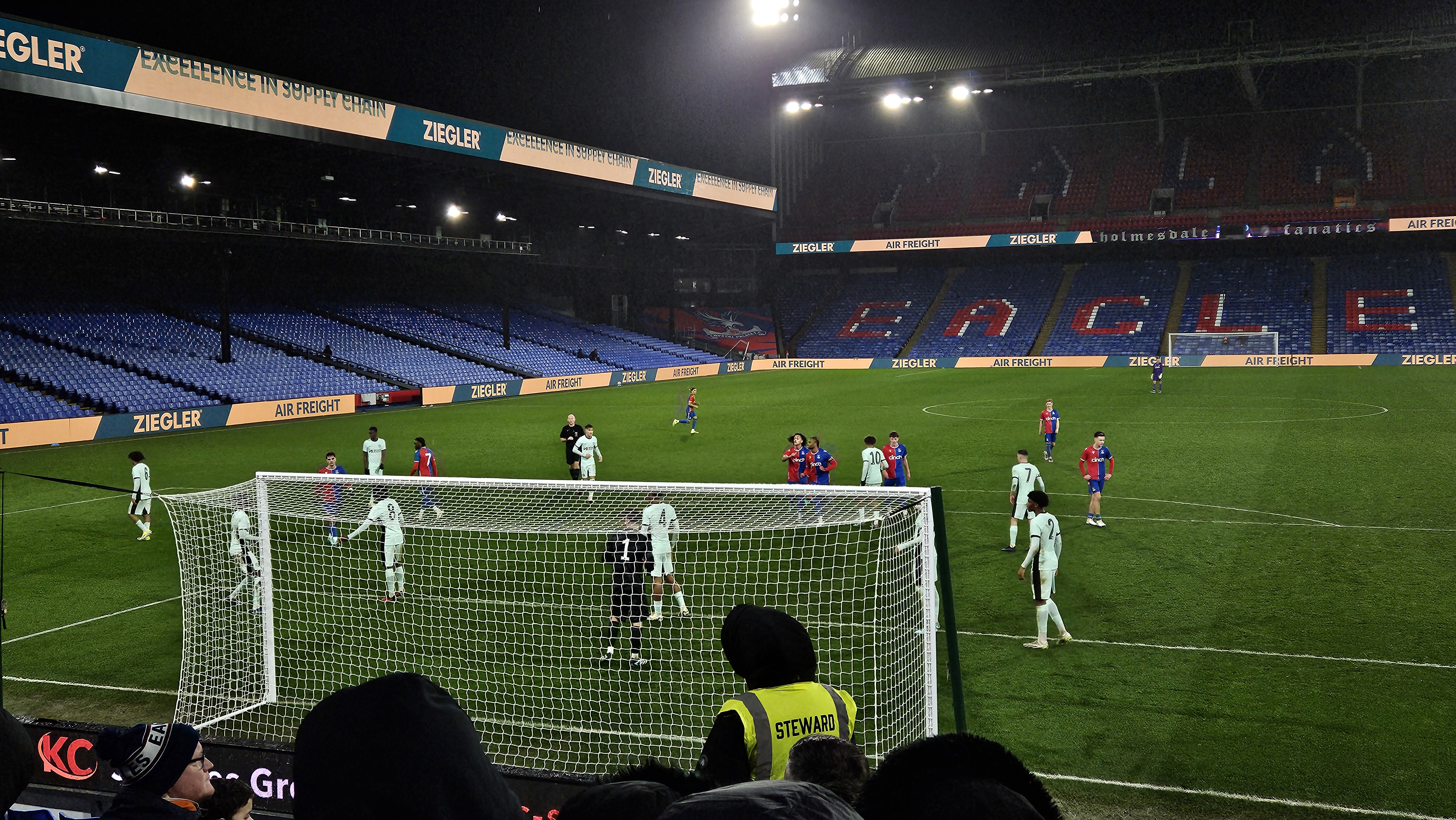 Selhurst Park under the light, so of course crosses are gonna end up on the smallest fullback at the far post.