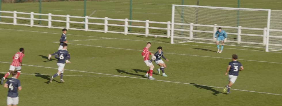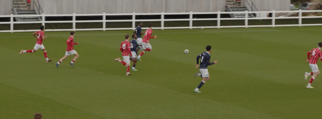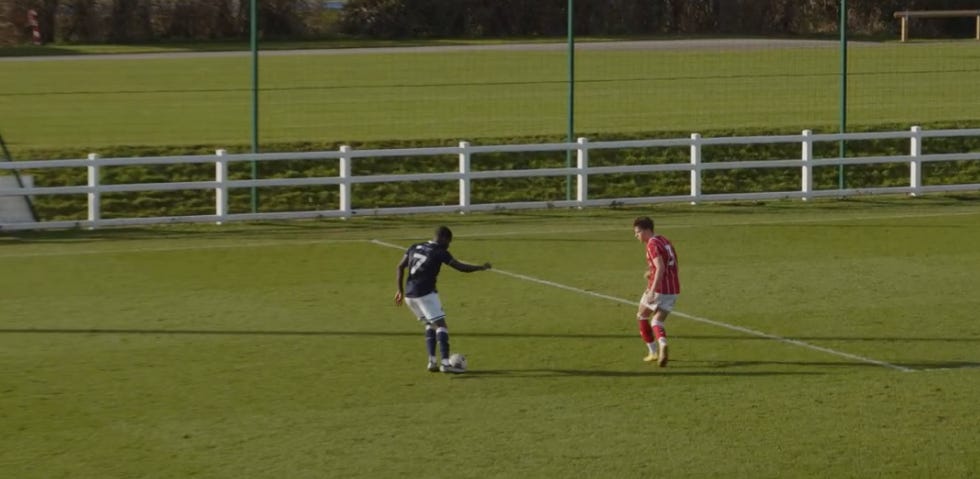 But can tend to “tangle” his feet before setting up his receptions (received passes not always perfect to make something of straight away), but driving 1v1 leaving fullbacks guessing even if ends up cutting inside