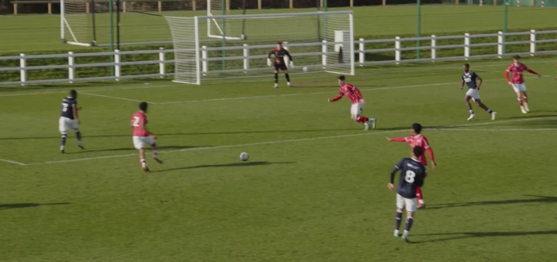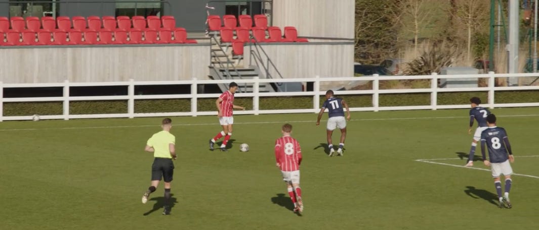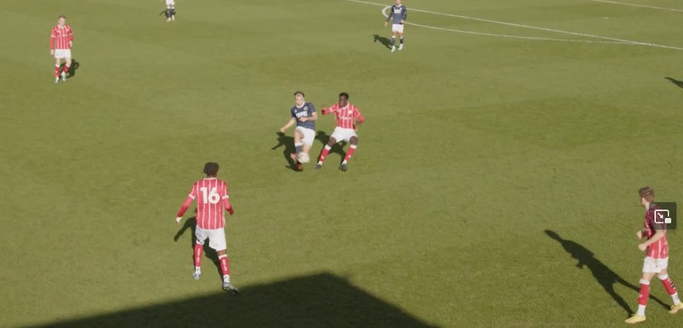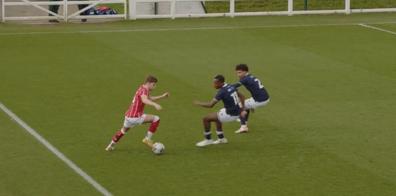One interesting carry with both feet to progress and get into final third, throwback style.