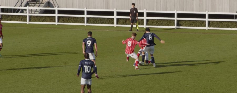 The trialist was seemingly Logan Laird, a Stoke City left back. Intriguing, considering he didn’t came on and was rumoured to be monitored by West Ham as of July 2023, touted as a “prodigy”