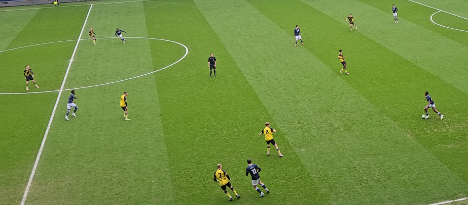 Movement off the ball is good, to stay between the ball and the goal at times.