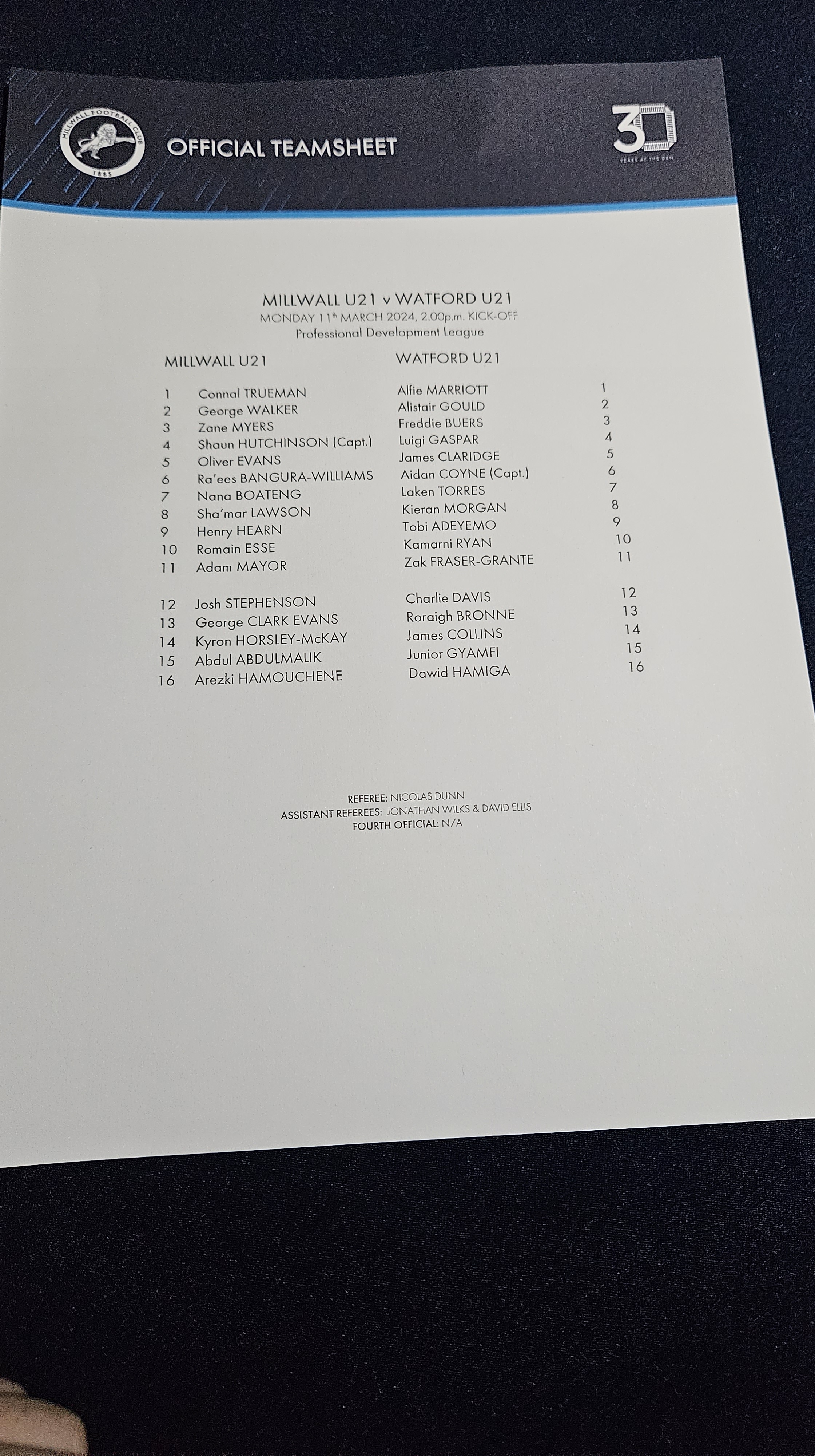 Millwall U21 – Watford U21s / Professional Development League – March 11