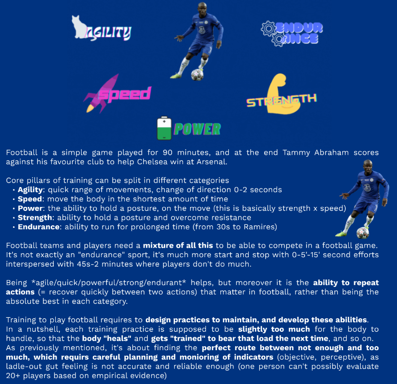 🟡You can second guess elements of the methology: Tuchel, no warm up (straight to it – modern). Pochettino; long dog parkour warm up (traditional).