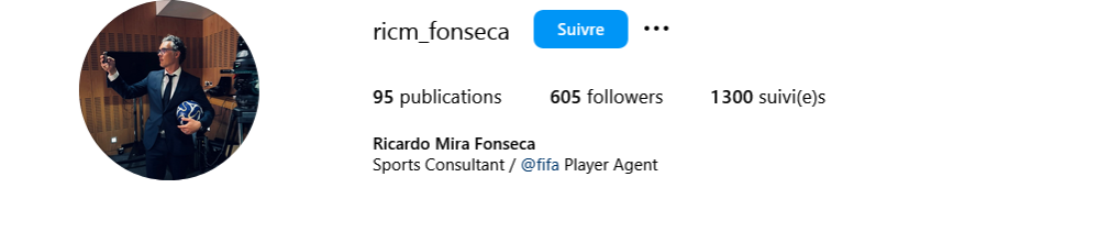 Who’s Instagram profile reads “FIFA player agent” and “Sports Consultant”