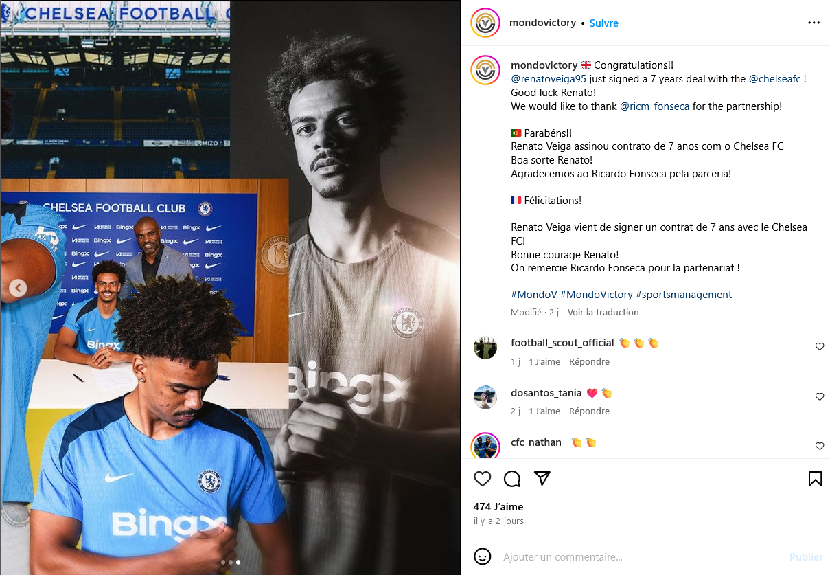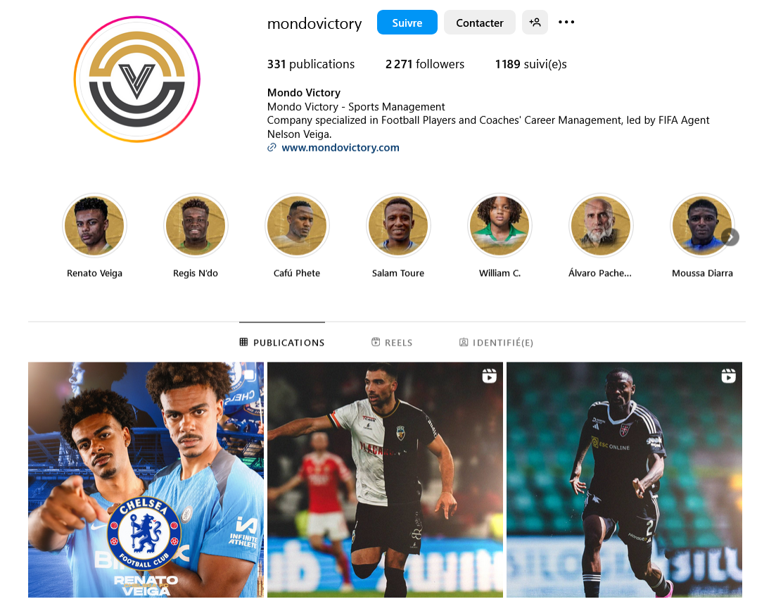 Mondo Victory is reported on Transfermarkt as being agency to manage the player’s interests, led by the player’s dad Nelson Veiga (former international).