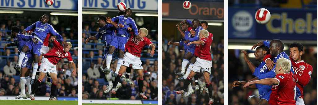 5ft8 Lassana Diarra winning a header above Mikel, Alan Smith and Kieran Richardson