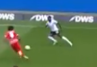 chasing his first touch, to concede a foul