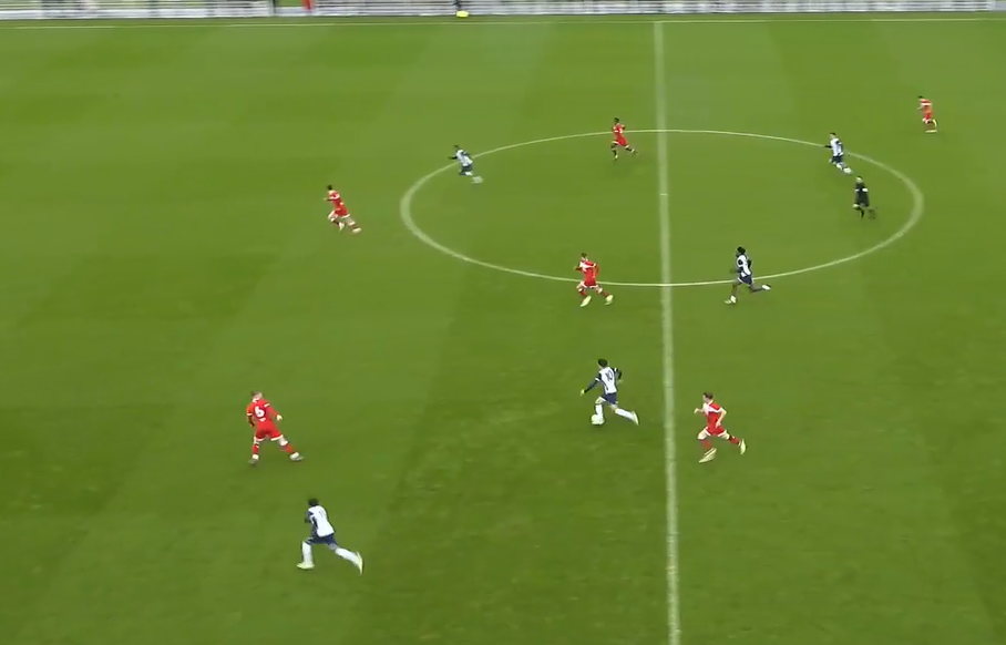 Substitute Lucas Harrison (17) was the kind of powerdrink attacker that can create danger against tired legs, I was surprised at his dynamism