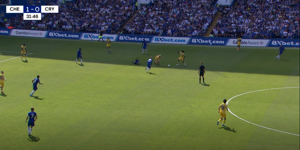 Like a Bob Sanchez long ball pumped on Cole Palmer’s head, ducking under it.