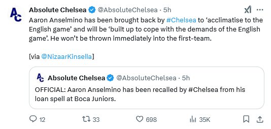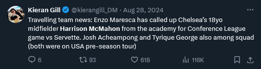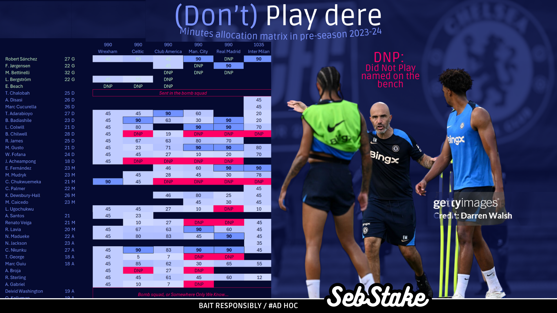 Full 90 for Carney Chukwuemeka in the first pre-season games? Trying to drum interest to get the 80k / week contract off their books, against every piece of common sense let alone on the back of a big knee injury? Then not involved at all. Makes sense.