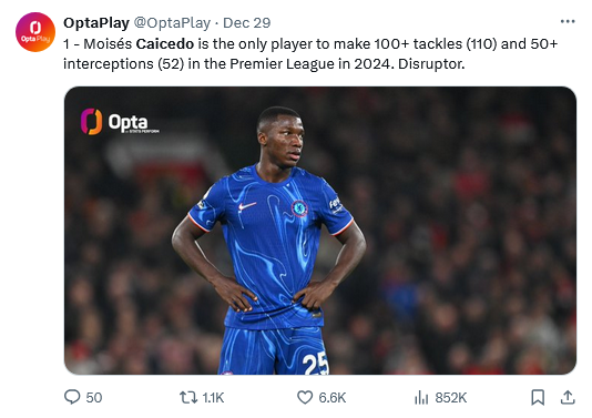 Whilst Gallagher outperformed 300 million of midfielders playing 51/52 (he missed the diabolical 2-1 defeat at United where Palmer/Enzo/Caicedo allowed Amrabat to play like the king of the park) and now stars for Diego Simeone’s Atletico, well clear of Real Madrid and Barcelona with the best defence in Europe.