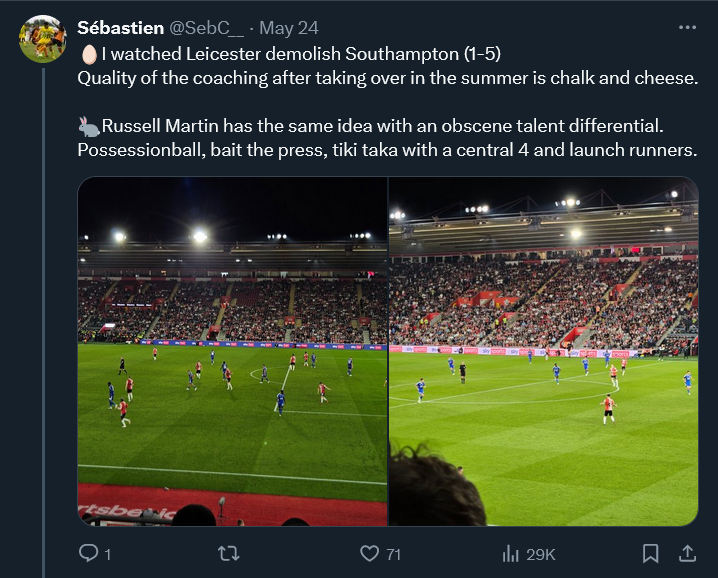 I was genuinely impressed with the speed of implementation of the game model when I saw Southampton-Leicester in September 2023.